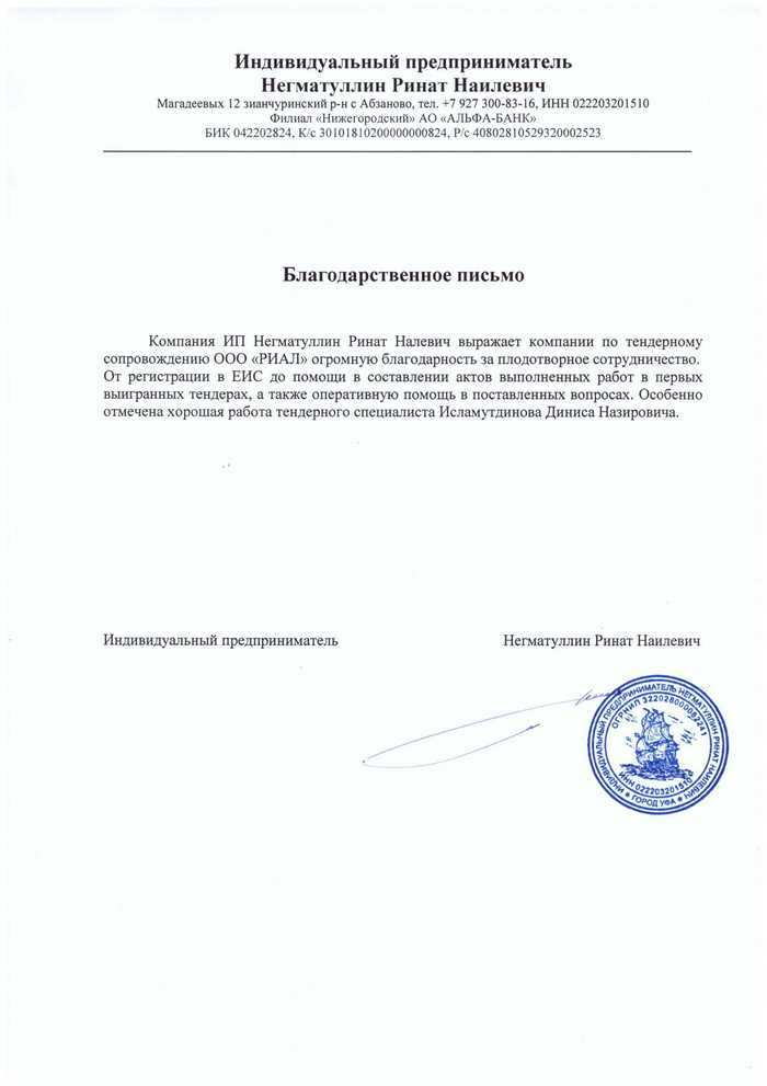 Согласно договору ООО РИАЛ получает вознаграждение только в случае вашей победы в закупках - это принципиально меняет уровень доверия и качество исполняемых услуг.